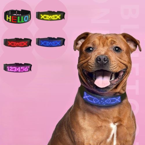 Notre collier lumineux chien offre une personnalisation complĂšte de l'affichage, inscrivez son nom ou des jolis motifs.